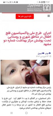 انعکاس عملکرد مرکز بهداشت شماره دو مشهد 21 فروردين 1404 بازدید: 28 امتیاز: ( 0 Rating ) اجرای طرح ملی واکسیناسیون فلج اطفال در منطقه تحت پوشش مرکز بهداشت شماره دو مشهد امتیاز کاربران لطفا رای دهید رای 1 رای 2 رای 3 رای 4 رای 5 خبر وبدا خبر وبدا خبر وبدا متن شما..