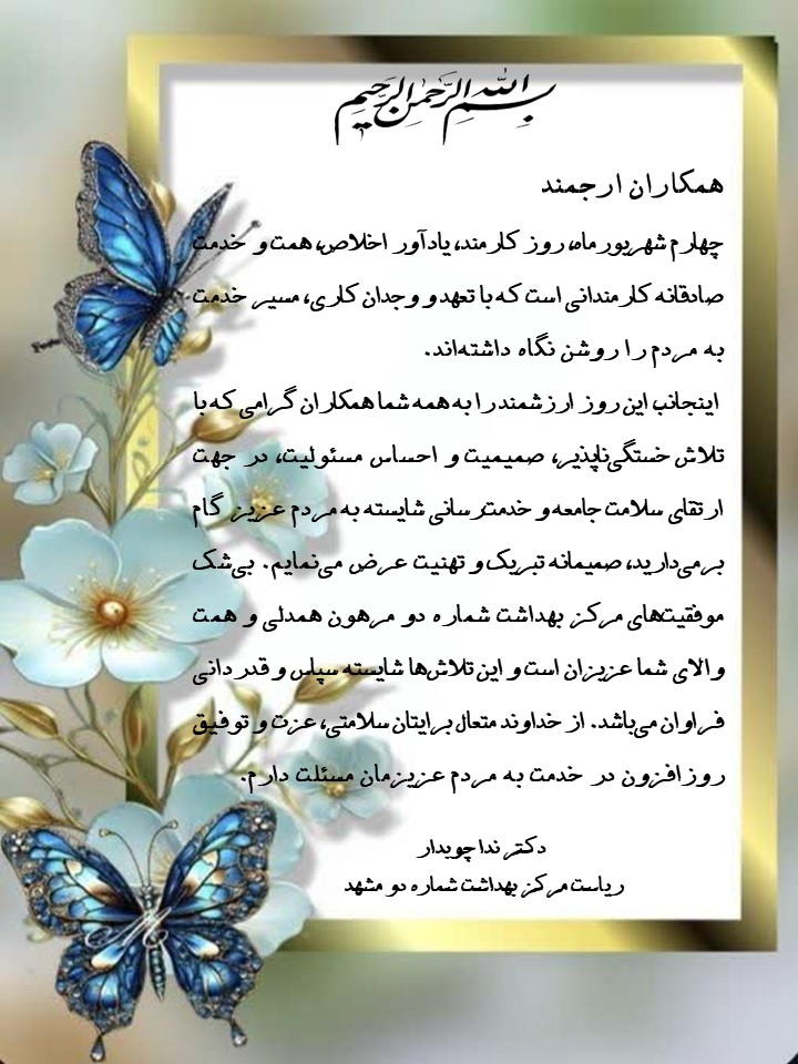 انعکاس عملکرد مرکز بهداشت شماره دو مشهد 04 شهریور 1404 بازدید: 16 امتیاز: ( 0 Rating ) روز کارمند گرامی باد امتیاز کاربران لطفا رای دهید رای 1 رای 2 رای 3 رای 4 رای 5 پیام تبریک پادکست اینفوگرافی موشن گرافی عکس نوشته اطلاعیه اکرانهای شهری خبر وبدا شبکه های اجتماعی پیام تبریک پادکست اینفوگرافی موشن گرافی عکس نوشته اطلاعیه اکرانهای شهری خبر وبدا شبکه های اجتماعی پیام تبریک پادکست متن شما ... اینفوگرافی متن شما ... موشن گرافی متن شما ... عکس نوشته متن شما ... اطلاعیه متن شما ... اکرانهای شهری خبر وبدا متن شما ... شبکه های اجتماعی متن شما ...