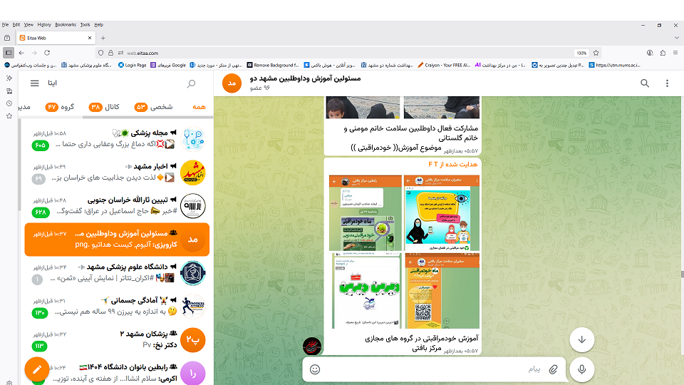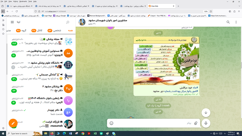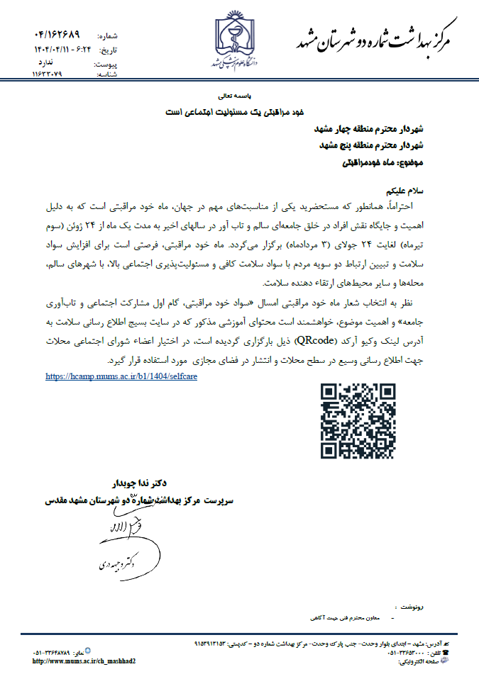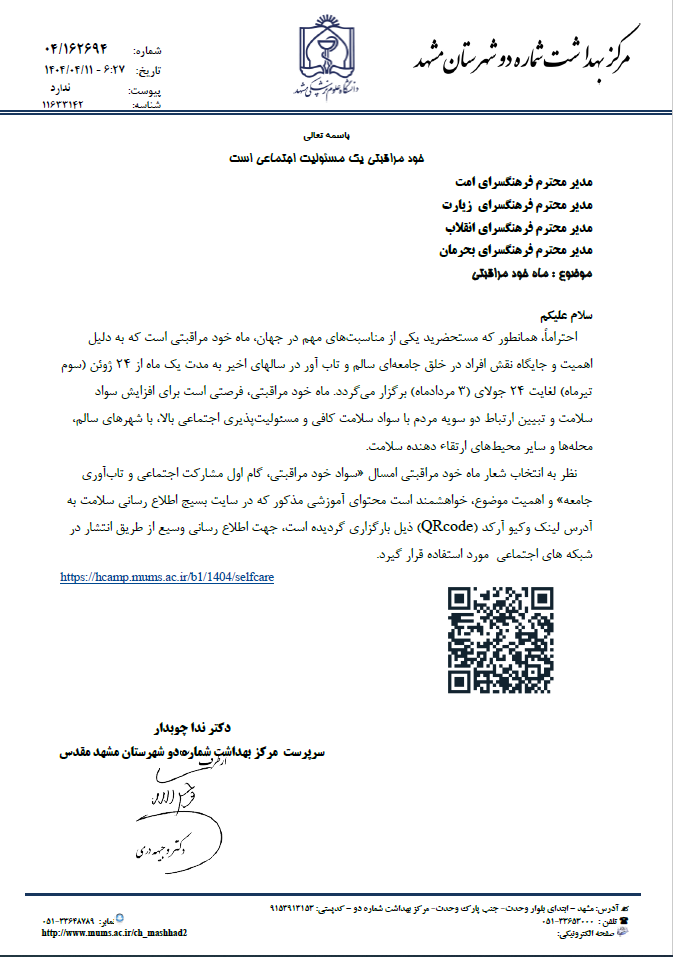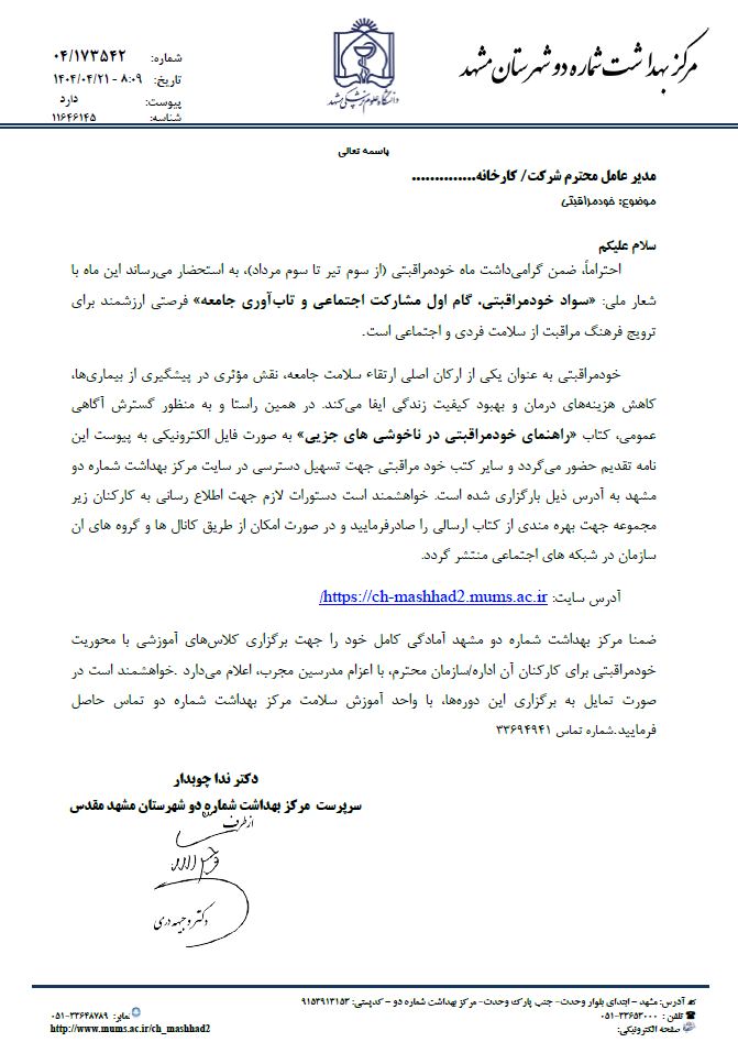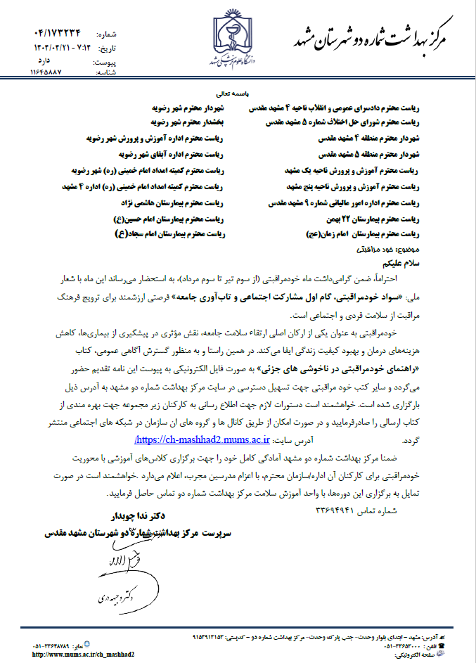 انعکاس عملکرد مرکز بهداشت شماره دو مشهد 03 تیر 1404 بازدید: 24 امتیاز: ( 0 Rating ) پویش خود مراقبتی -سواد خودمراقبتی، گام اول مشارکت اجتماعی و تاب آوری جامعه امتیاز کاربران لطفا رای دهید رای 1 رای 2 رای 3 رای 4 رای 5 انعکاس رسانه ای پوستر عکس نوشته اطلاعیه وبدا شبکه های اجتماعی انعکاس رسانه ای پوستر عکس نوشته اطلاعیه وبدا شبکه های اجتماعی انعکاس رسانه ای پوستر عکس نوشته اطلاعیه به اطلاع بازدیدکنندگان محترم می رساند کتاب های خود مراقبتی شامل: راهنمای خود مراقبتی جوانانناخوشیهای جزئیسبک زندگی سالمخطر سنجیبارداری حهت سهولیت دسترسی در صفحه اصلی سایت مرکز بهداشت شماره دو مشهد قرارداده شده است. وبدا شبکه های اجتماعی