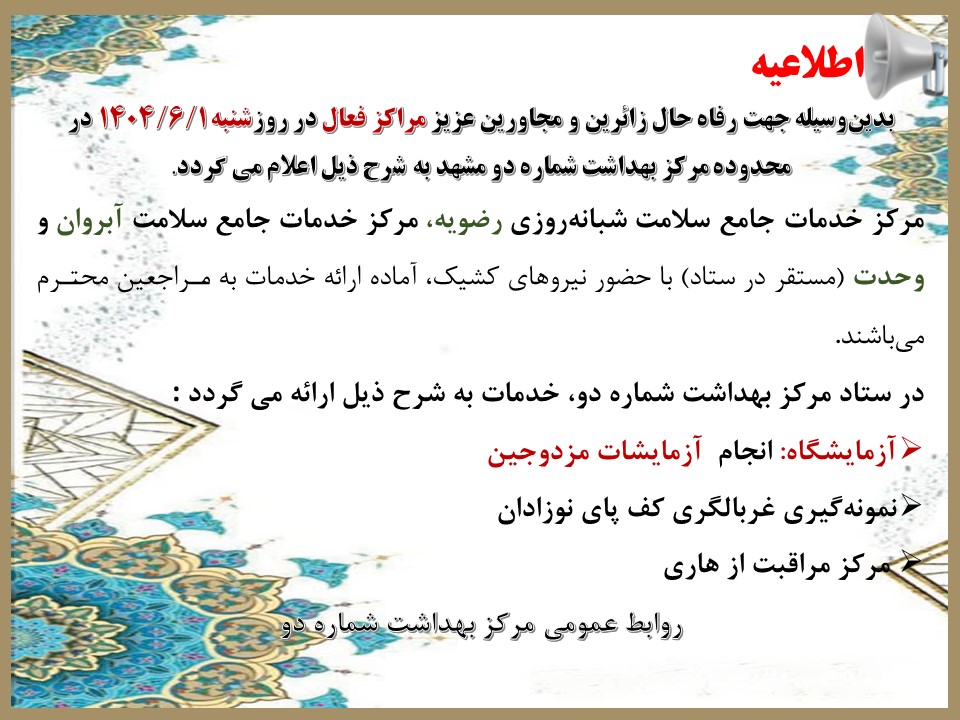 انعکاس عملکرد مرکز بهداشت شماره دو مشهد 13 مرداد 1404 بازدید: 15 امتیاز: ( 0 Rating ) دهه آخر صفر امتیاز کاربران لطفا رای دهید رای 1 رای 2 رای 3 رای 4 رای 5 کلیپ پادکست پوستر عکس نوشته اطلاعیه خبر وبدا شبکه های اجتماعی اطلاعیه کلیپ پادکست پوستر عکس نوشته اطلاعیه خبر وبدا شبکه های اجتماعی اطلاعیه کلیپ پادکست مجموعه پادکست های آموزشی ویژه زائرین پیاده گوینده الهام کامل طرقی (مراقب سلامت) منبع توصیه های طب سنتی در پیاده روی اربعین- انتشارات کلام حق تهیه شده در واحد آموزش سلامت و روابط عمومی مرکز بهداشت شماره دو مشهد پوستر عکس نوشته متن شما ... اطلاعیه خبر وبدا شبکه های اجتماعی متن شما ... اطلاعیه