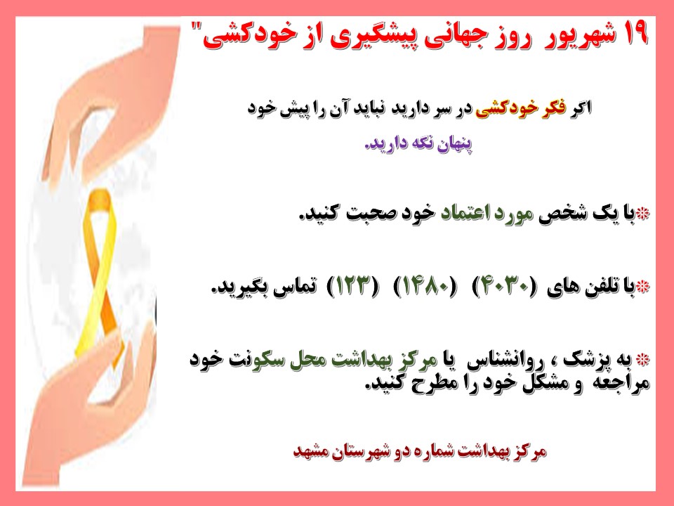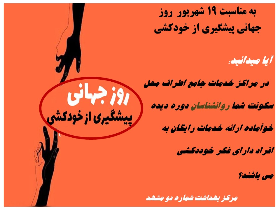 انعکاس عملکرد مرکز بهداشت شماره دو مشهد 19 شهریور 1404 بازدید: 21 امتیاز: ( 0 Rating ) 19 شهریور روز جهانی پیشگیری از خود کشی امتیاز کاربران لطفا رای دهید رای 1 رای 2 رای 3 رای 4 رای 5 عکس نوشته اطلاعیه اکرانهای شهری خبر وبدا شبکه های اجتماعی عکس نوشته اطلاعیه اکرانهای شهری خبر وبدا شبکه های اجتماعی عکس نوشته اطلاعیه متن شما ... اکرانهای شهری خبر وبدا متن شما ... شبکه های اجتماعی متن شما ...