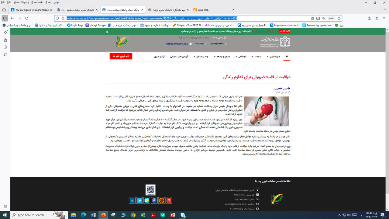 انعکاس عملکرد مرکز بهداشت شماره دو مشهد 07 مهر 1404 بازدید: 33 امتیاز: ( 0 Rating ) هفتم مهر ماه روز جهانی قلب امتیاز کاربران لطفا رای دهید رای 1 رای 2 رای 3 رای 4 رای 5 پوستر عکس نوشته خبر وبدا شبکه های اجتماعی پوستر عکس نوشته خبر وبدا شبکه های اجتماعی پوستر عکس نوشته متن شما ... خبر وبدا شبکه های اجتماعی متن شما ...