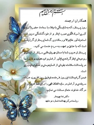 انعکاس عملکرد مرکز بهداشت شماره دو مشهد 05 آبان 1404 بازدید: 30 امتیاز: ( 0 Rating ) ولادت بانوی صبر و استقامت و روز پرستار مبارک باد امتیاز کاربران پیام تبریک عکس نوشته کلیپ پیام تبریک عکس نوشته کلیپ پیام تبریک عکس نوشته کلیپ