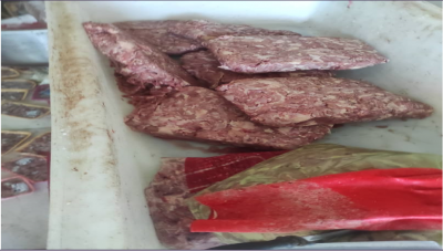 در پی گزارش تلفنی و شکایت مردمی مبنی بر وجود کارگاه غیرمجاز تهیه گوشت در یکی از مناطق حاشیه شهر ، در بازرسی مشترک مورخ 25/9/1400 که توسط کارشناسان بهداشت محیط و حرفه ای مرکز شماره دو مشهد با اداره دامپزشکی و نیروی انتظامی انجام گرفت ، انواع گوشت چرخ کرده و مشکوک به میزان 800 کیلوگرم کشف و ضبط گردیدکه افراد سودجو اقدام به چرخ تمودن انواع سنگدان و گوشت برزیلی در شرایط کاملا غیر بهداشتی می نمودند که پرونده به اداره دامپزشکی تحویل گردید و محل با دستور مقام محترم قضایی پلمب شد.